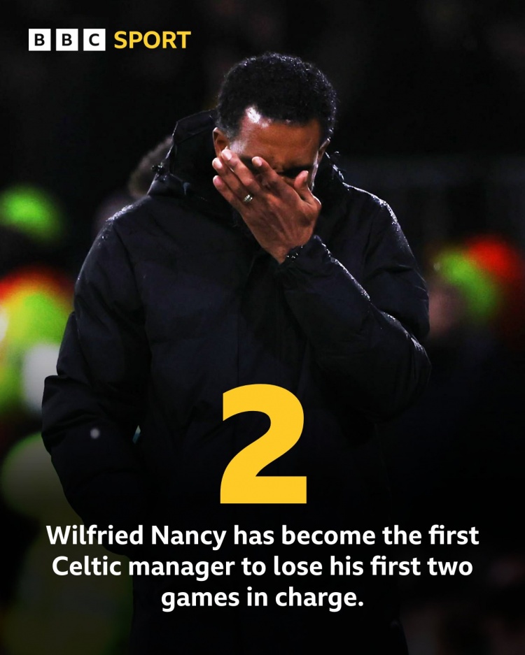 南希出任凯尔特人主帅以来带队参加2场比赛,分别输给哈茨和罗马,打进1球,丢掉5球,据BBC统计,南希是凯尔特人队史首位开局两连败主帅。